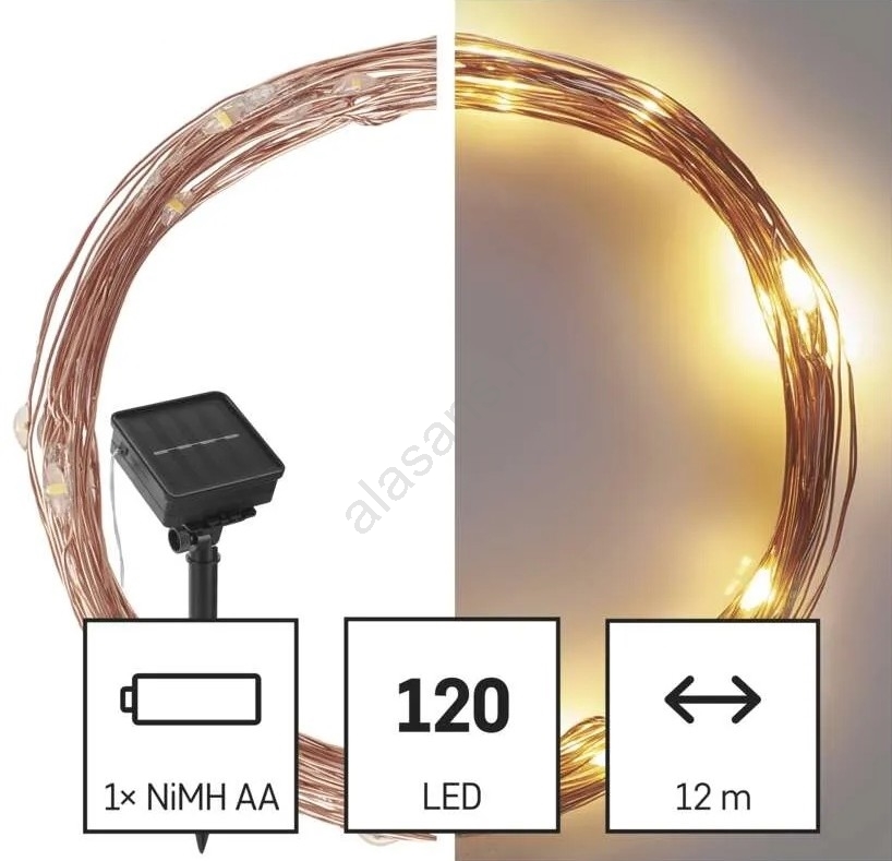 LED solarni lanac LED/2,4W/1,2V 1xAA 15 m IP44 3000K 600 mAh | Svijet svjetiljki