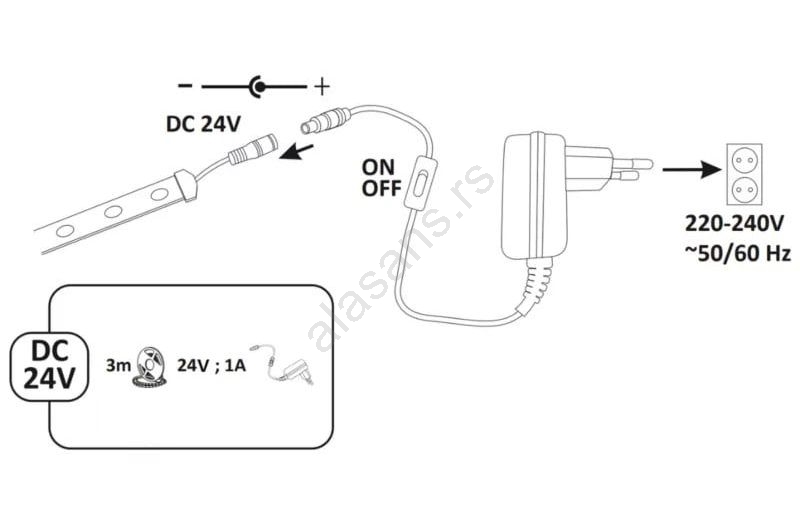 LED traka za spoljašnju upotrebu 3m LED/23W/24V/230V 4000K IP65 | Alasans