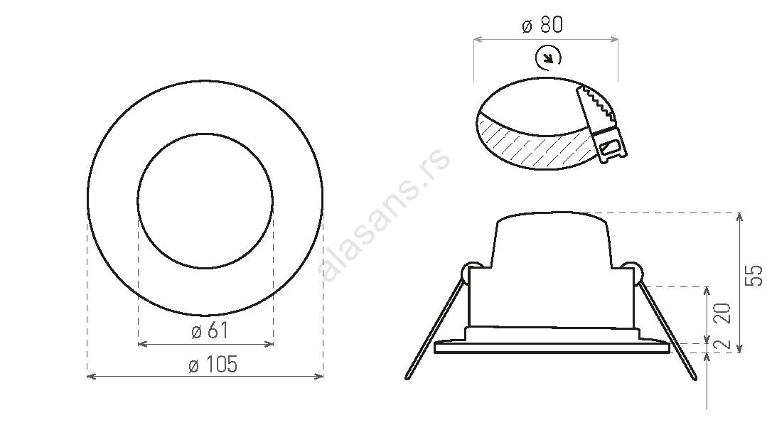 LED ugradno plafonsko svetlo za kupatilo BONO LED/8W/230V 3000K IP65 hrom | Alasans