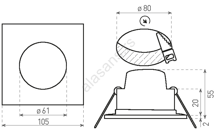 LED ugradna plafonska svetiljka za kupatilo LED/8W/230V 3000K IP65 crna | Alasans