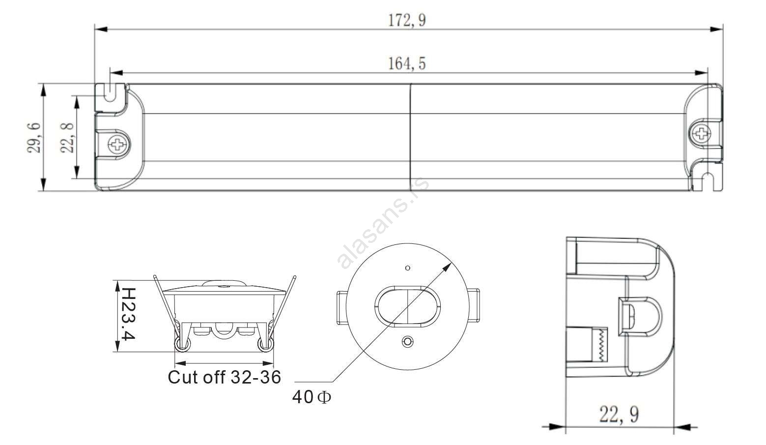 • Svetiljka se sastoji od invertera za nužnu rasvetu sa integrisanom LiFePO4 baterijom i svetlosnog izvora opremljenog odgovarajućom optikom.