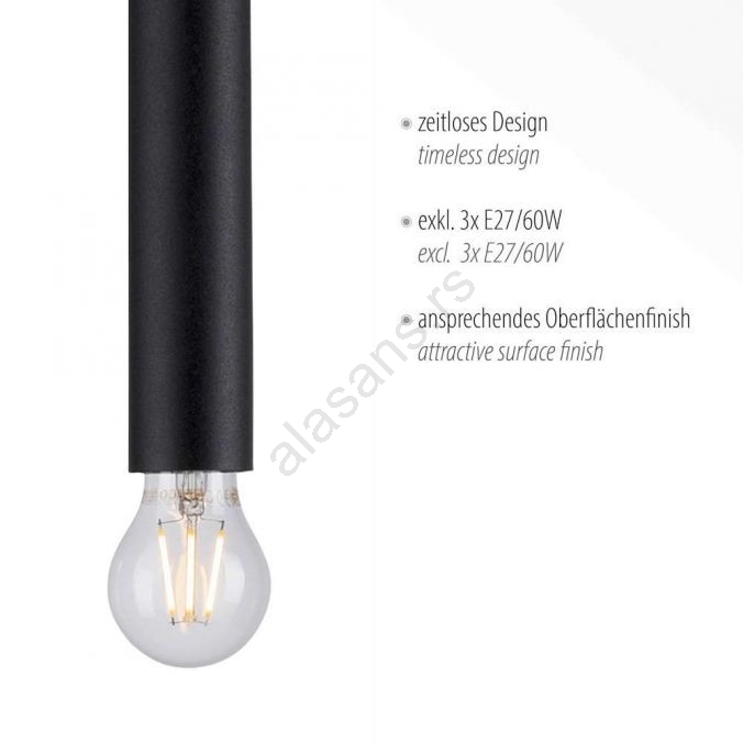 Leuchten Direkt 15618-18 - Luster na sajli BRUNA 3xE27/60W/230V crna | Alasans