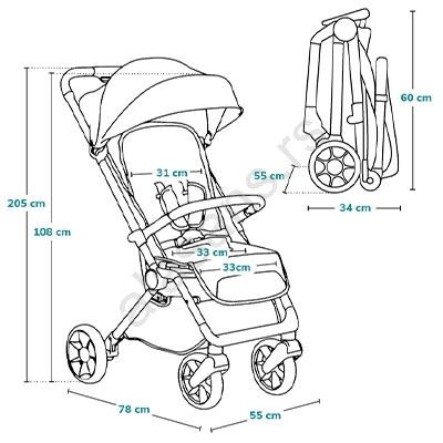 • Kolica su opremljena vodootpornom krovicom XXL sa UPF50+ filtrom, koja će zaštititi vaše dete u raznim vremenskim uslovima i pružiti prijatnu hladovinu.