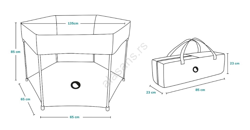 • Ogradica se isporučuje uz putnu torbu sa praktičnom ručkom za lako prenošenje.