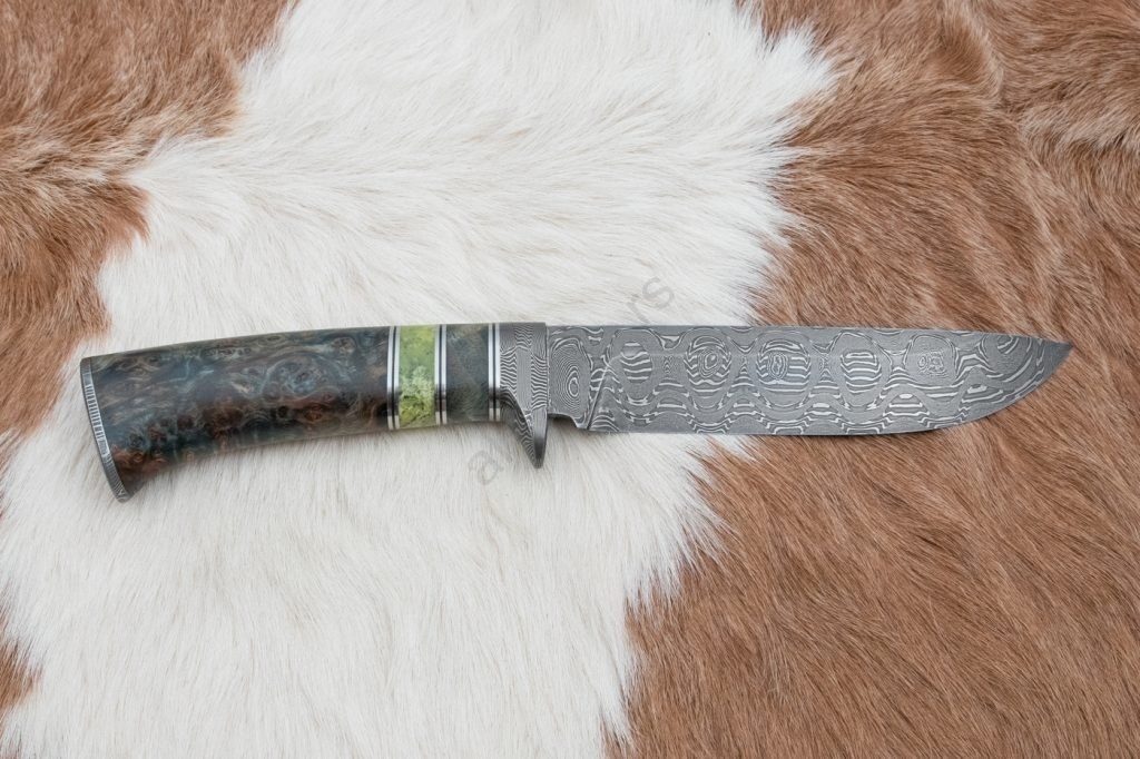 Lovački damaški nož 14,5 cm, olša/serpentinit | Alasans