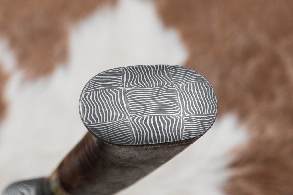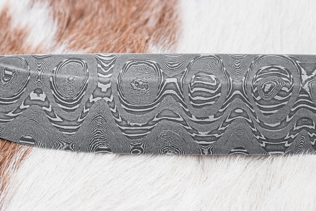 • Sečivo i zaštita su kovani od damaščanskog čelika koji stvara dekorativne mozaike.