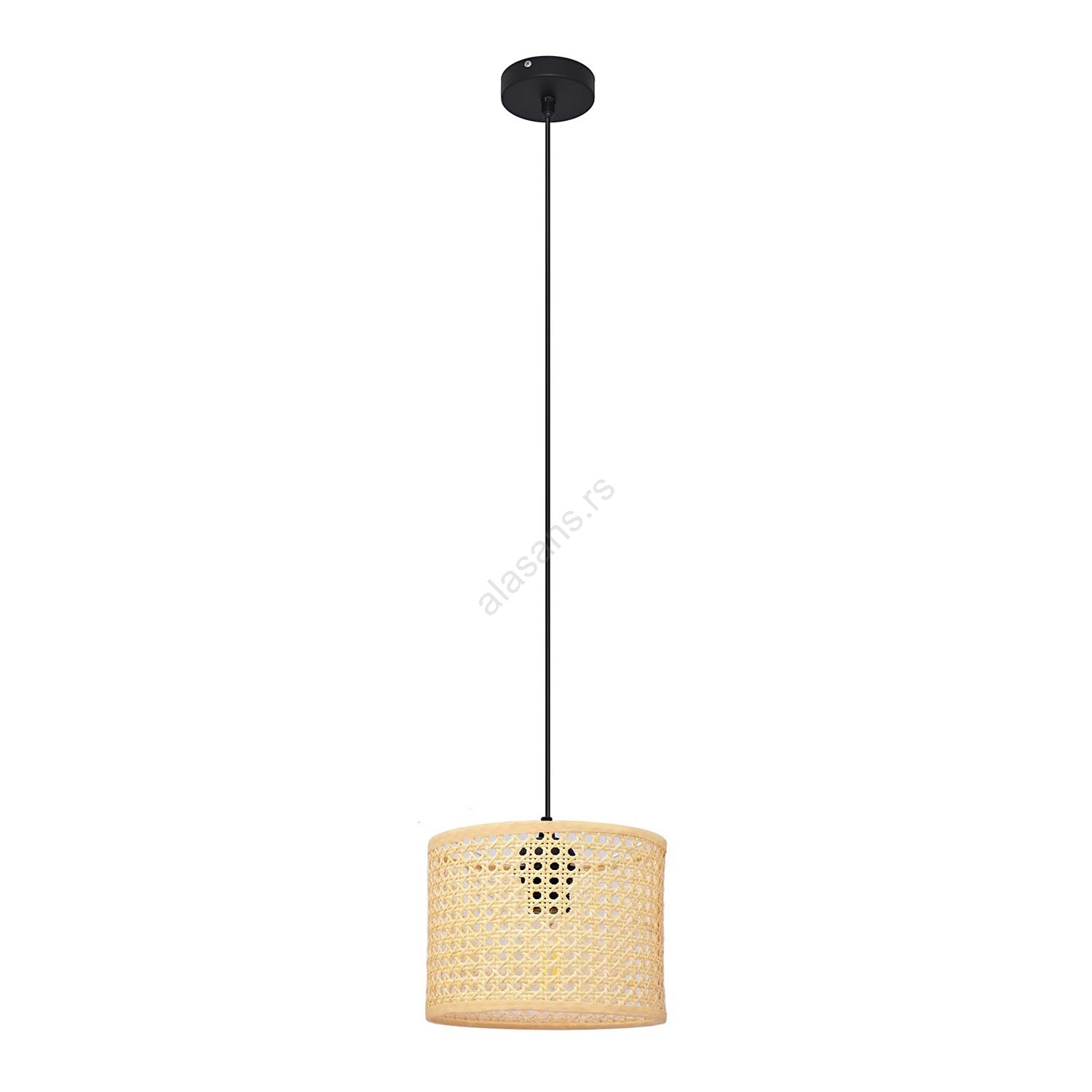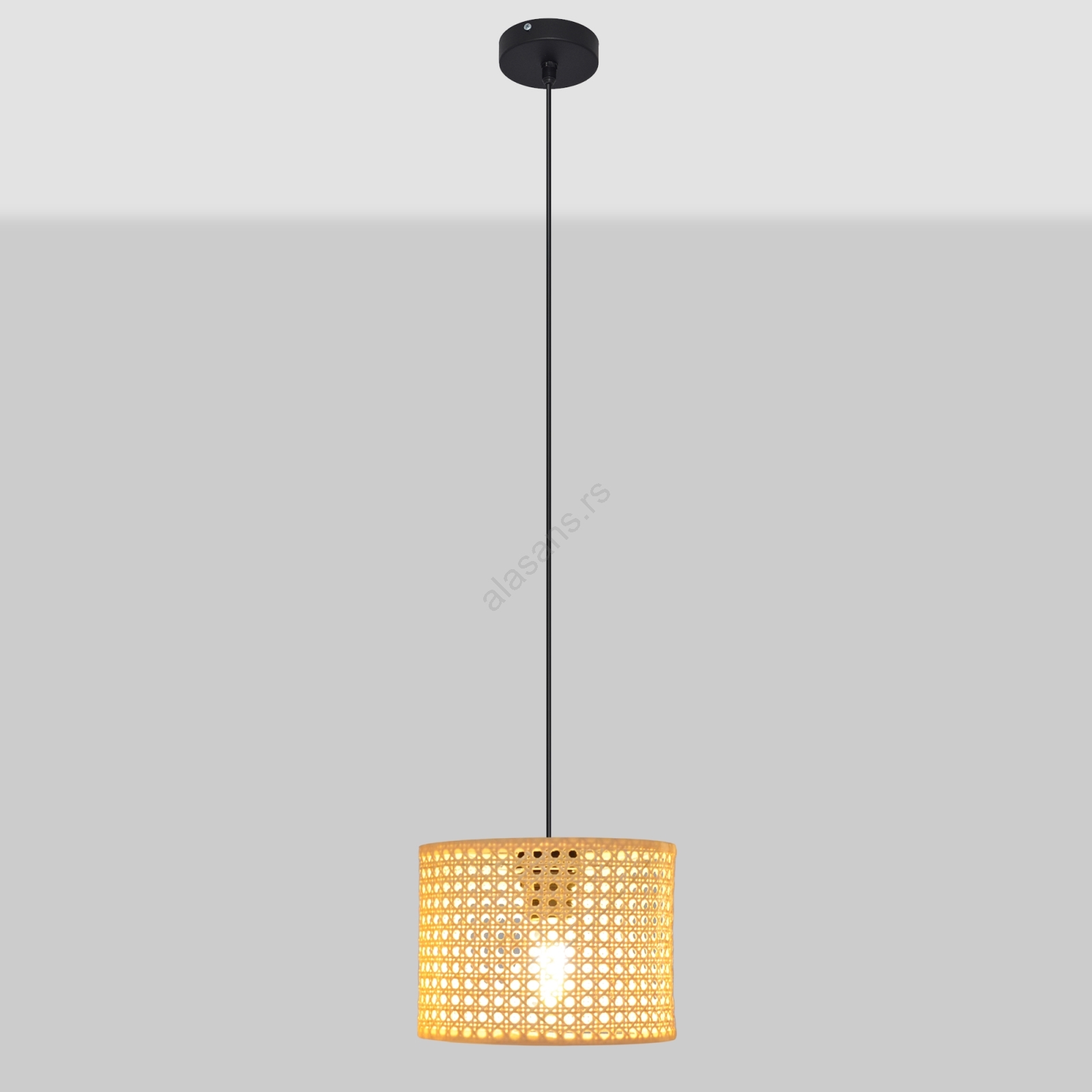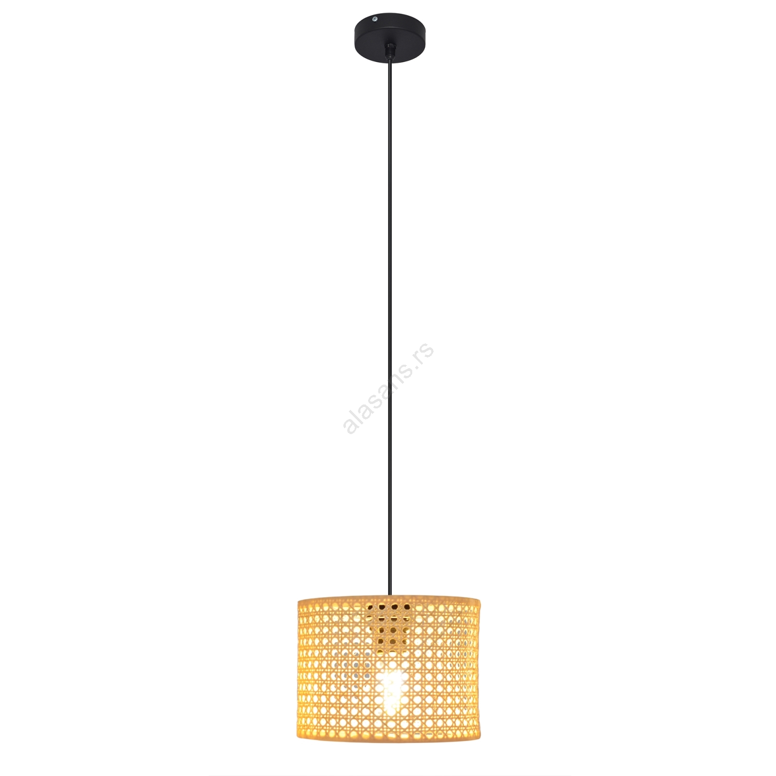 Luster na sajli ALBA 1x E27/15W/230V, prečnik 20 cm, ratan/crna | Alasans