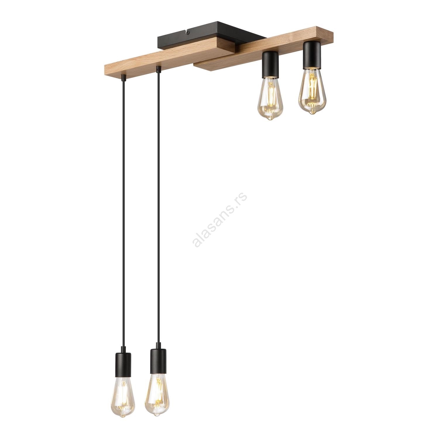 Luster na sajli CORTINA 4xE27/15W/230V crna/hrast | Lampomanija