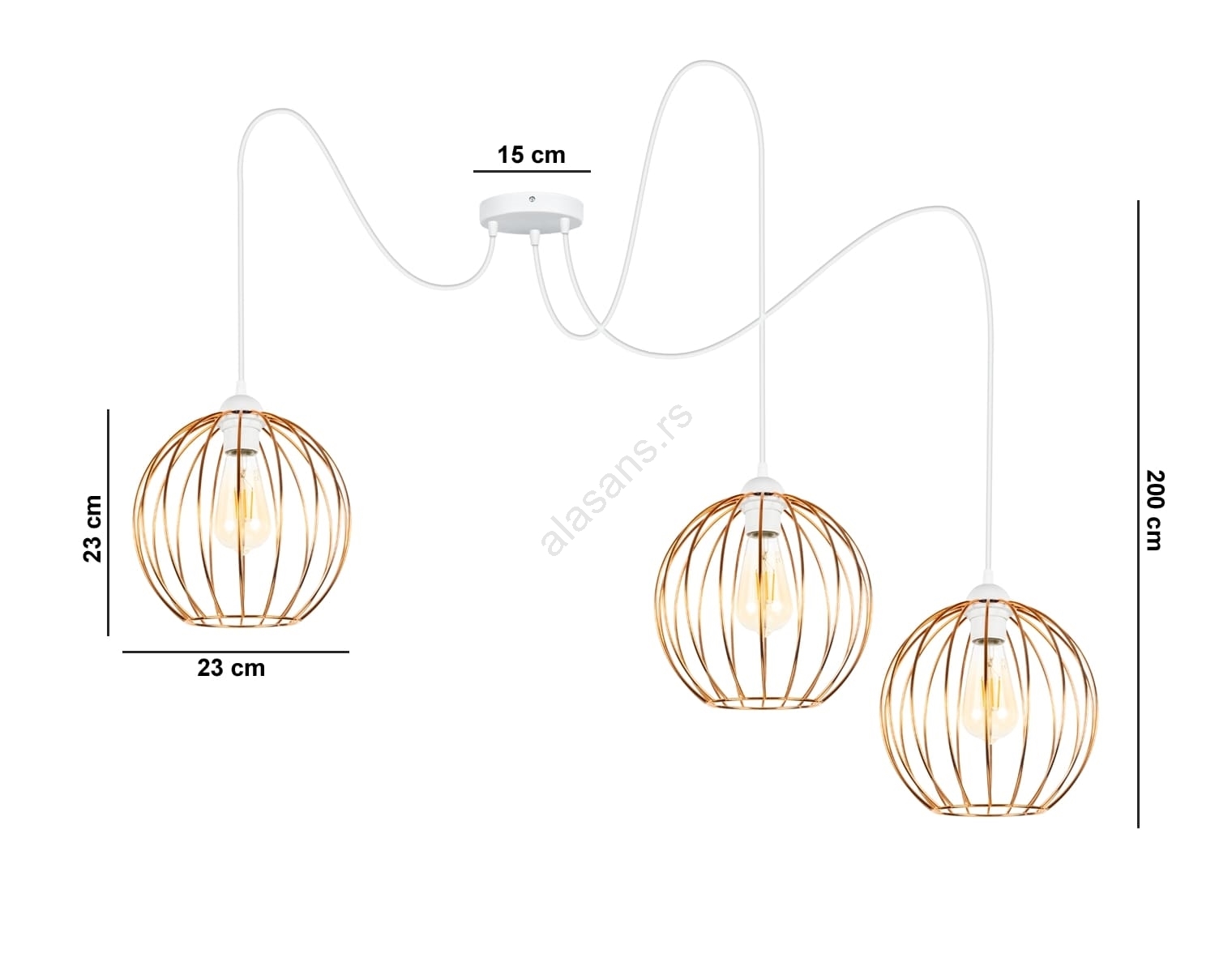 Luster na sajli MATT 3xE27/60W/230V pauk beli/bakreni | Alasans