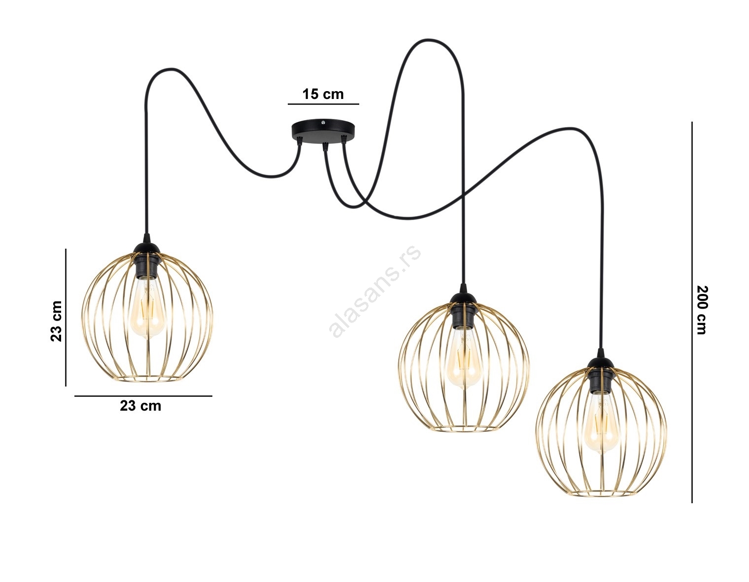 Luster na sajli MATT 3xE27/60W/230V pauk crna/zlatna | Lampomanija