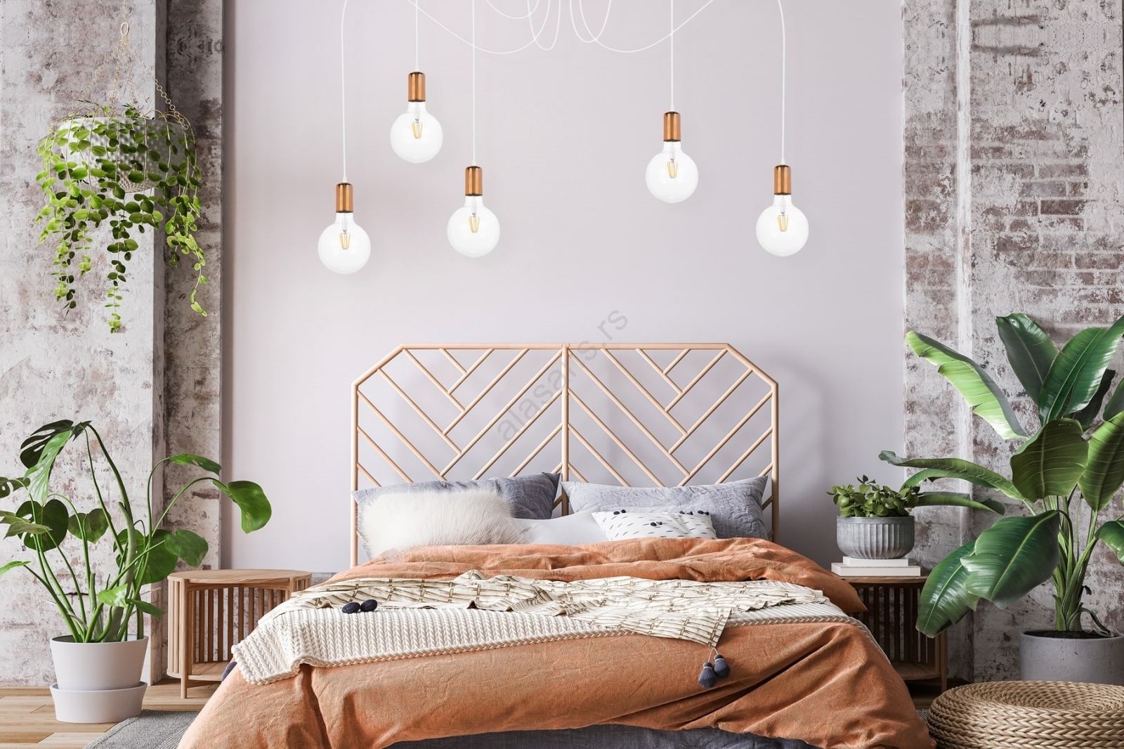 Luster na sajli MIROS 5xE27/60W/230V paukov bela/bakrena