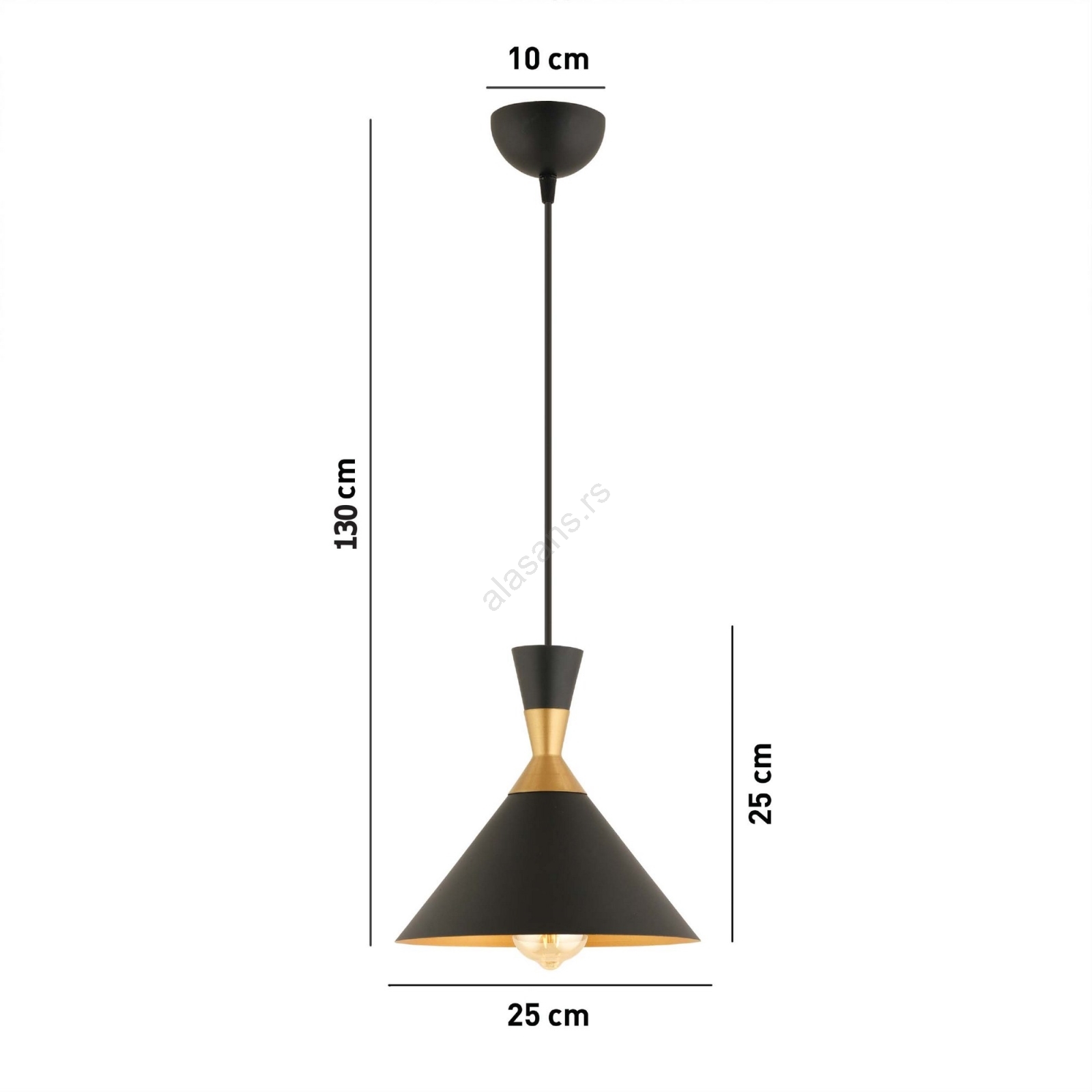 Luster na sajli MONZA 1xE27/40W/230V Ø 25 cm crna/zlatna | Alasans