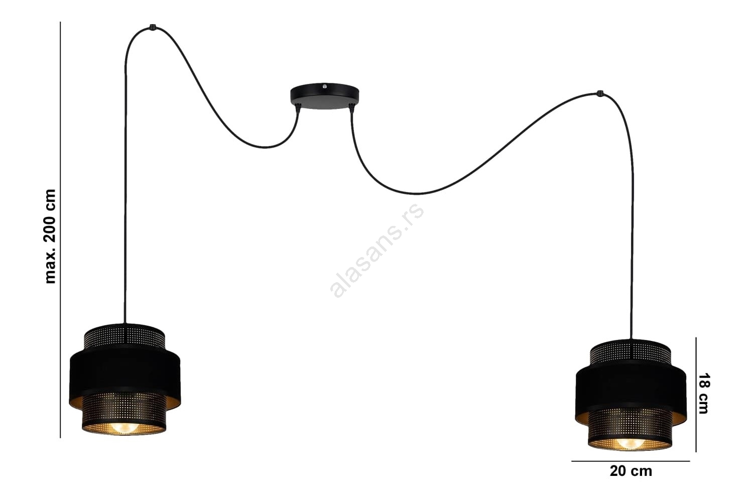 • Luster na sajli NESS 2xE27/60W/230V pauk crni