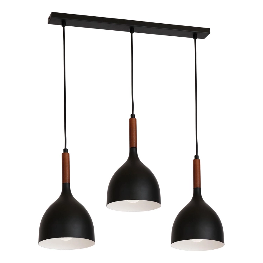 Luster na lanku NOAK WOOD 3xE27/15W/230V crna/buk