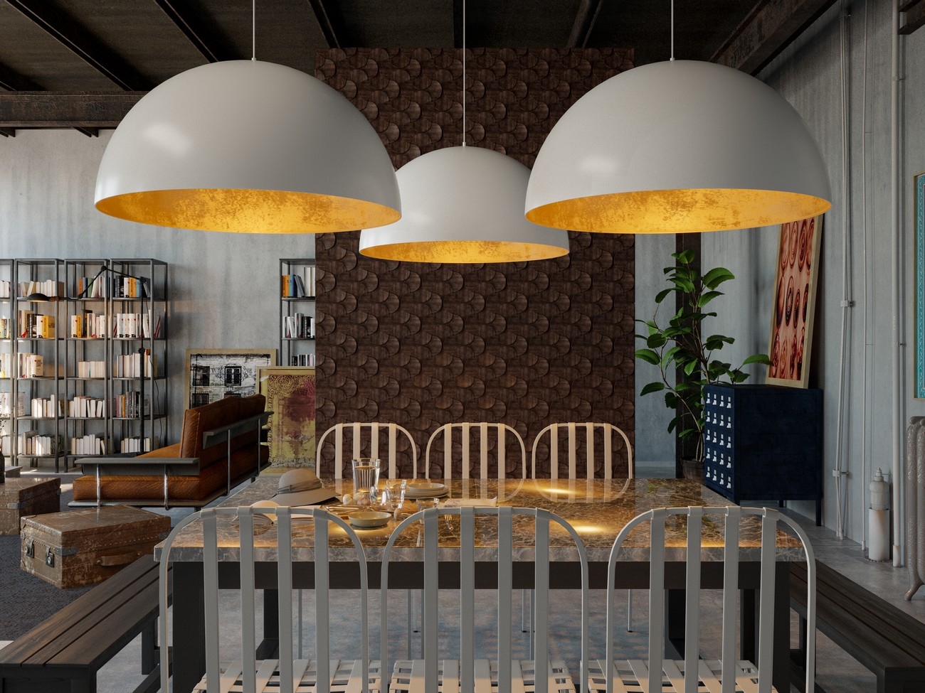 • Luster na sajli SFERA 1xE27/60W/230V Ø 35 cm bela/bakrena