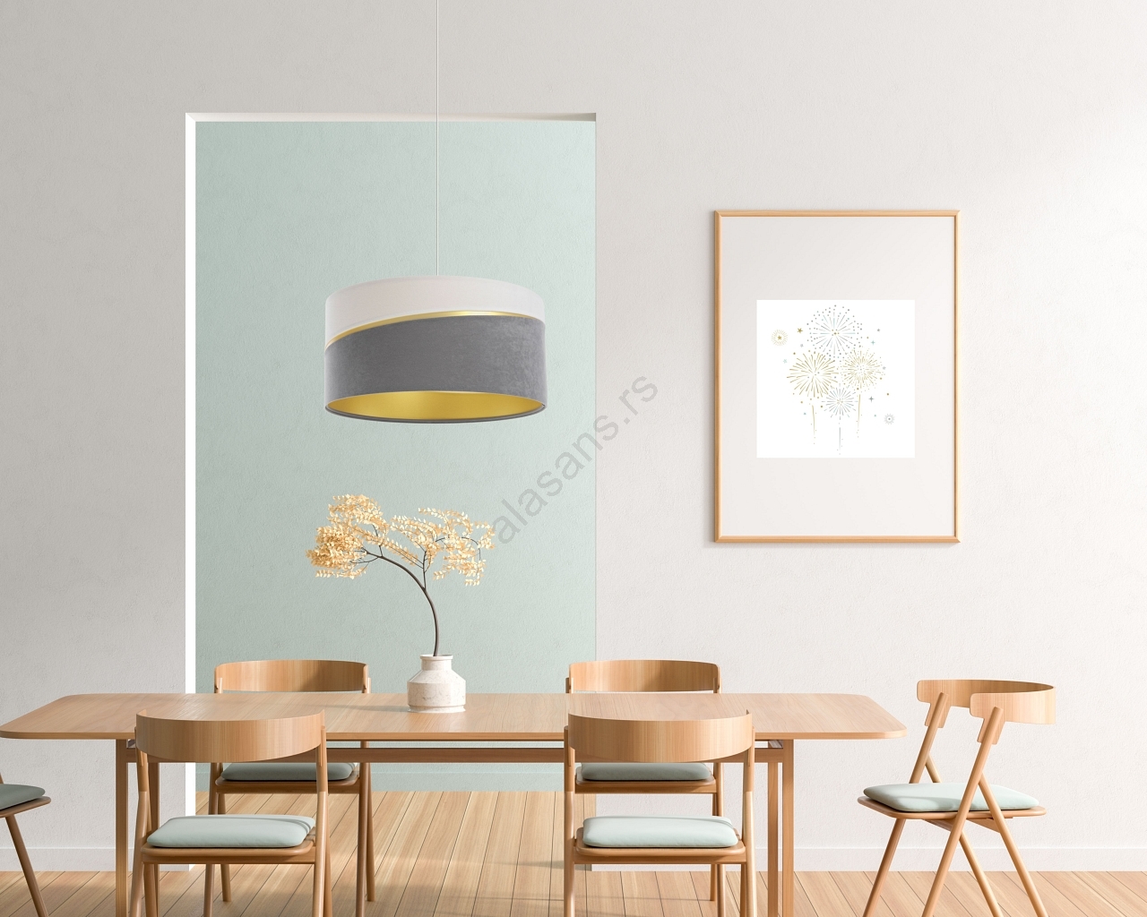 Luster na lanku SWING 1xE27/60W/230V siva/bela/zlatna | Lampomanija