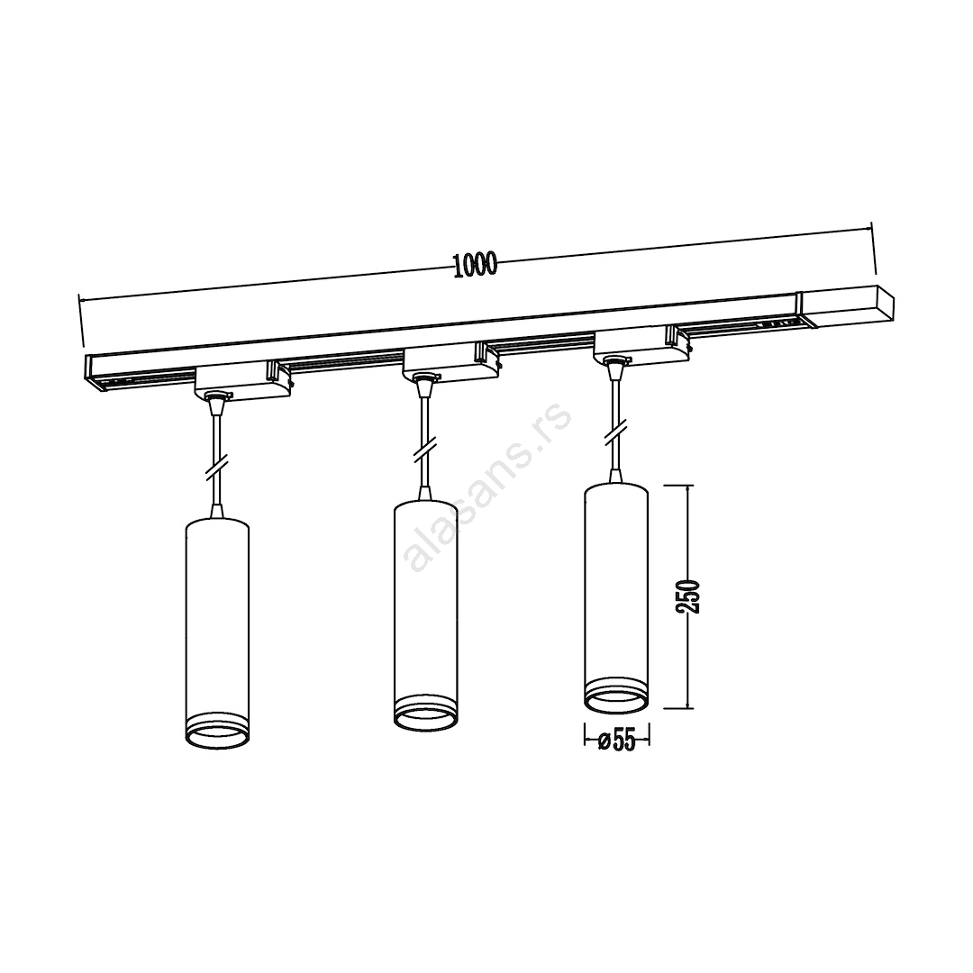 Luster na sajli u šinskom sistemu PIPE 3xGU10/10W/230V crna | Alasans