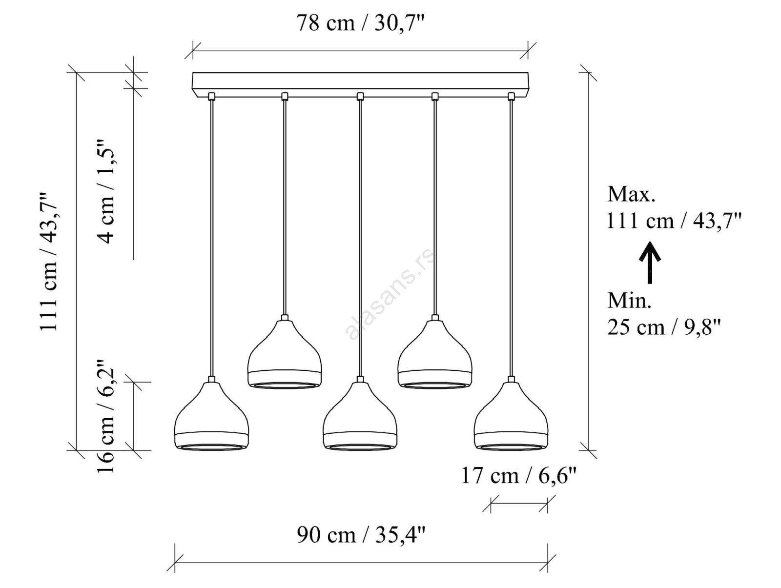 Luster na sajli YILDO 5xE27/40W/230V crna/zlatna | Alasans