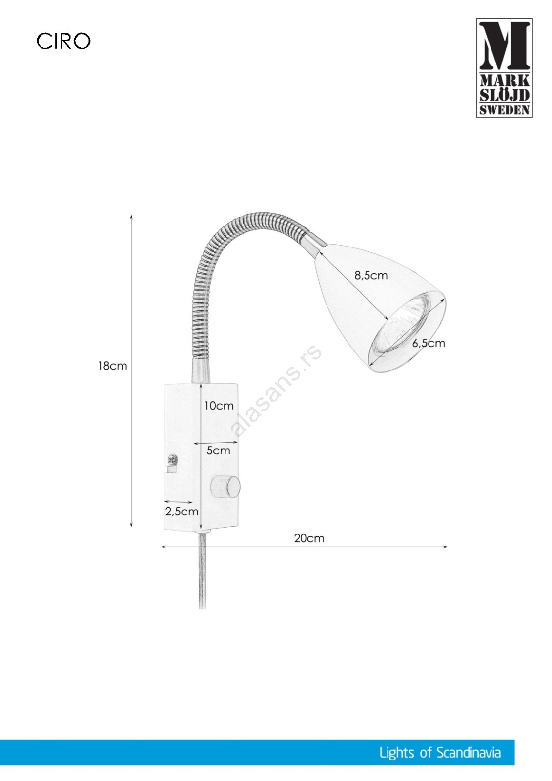 • Markslöjd 107410 - Prigušiva zidna svetiljka CIRO 1xGU10/7W/230V