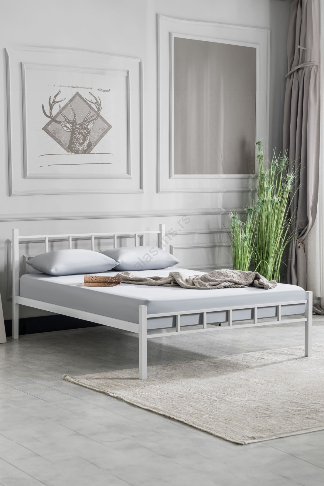Metalni krevet za dvoje ORMEL 120x200 cm, beo, maksimalna nosivost 120 kg
