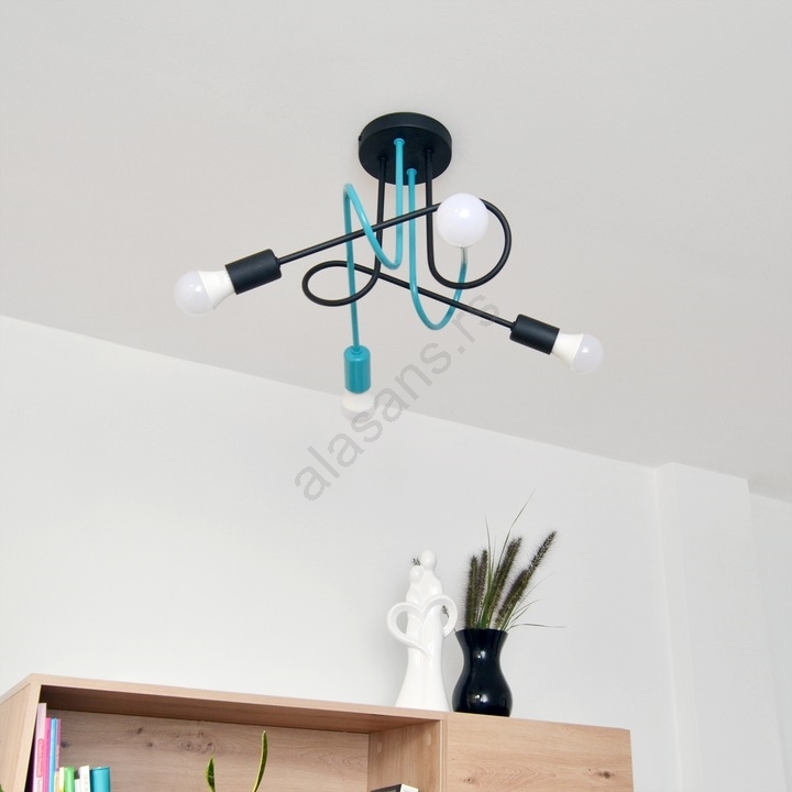 Plafonski luster OXFORD 4xE27/15W/230V crna/tirkizna | Alasans