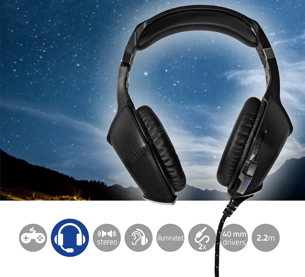 Nedis GHST250BK - LED gejmerske slušalice sa mikrofonom, crne/plave | Alasans