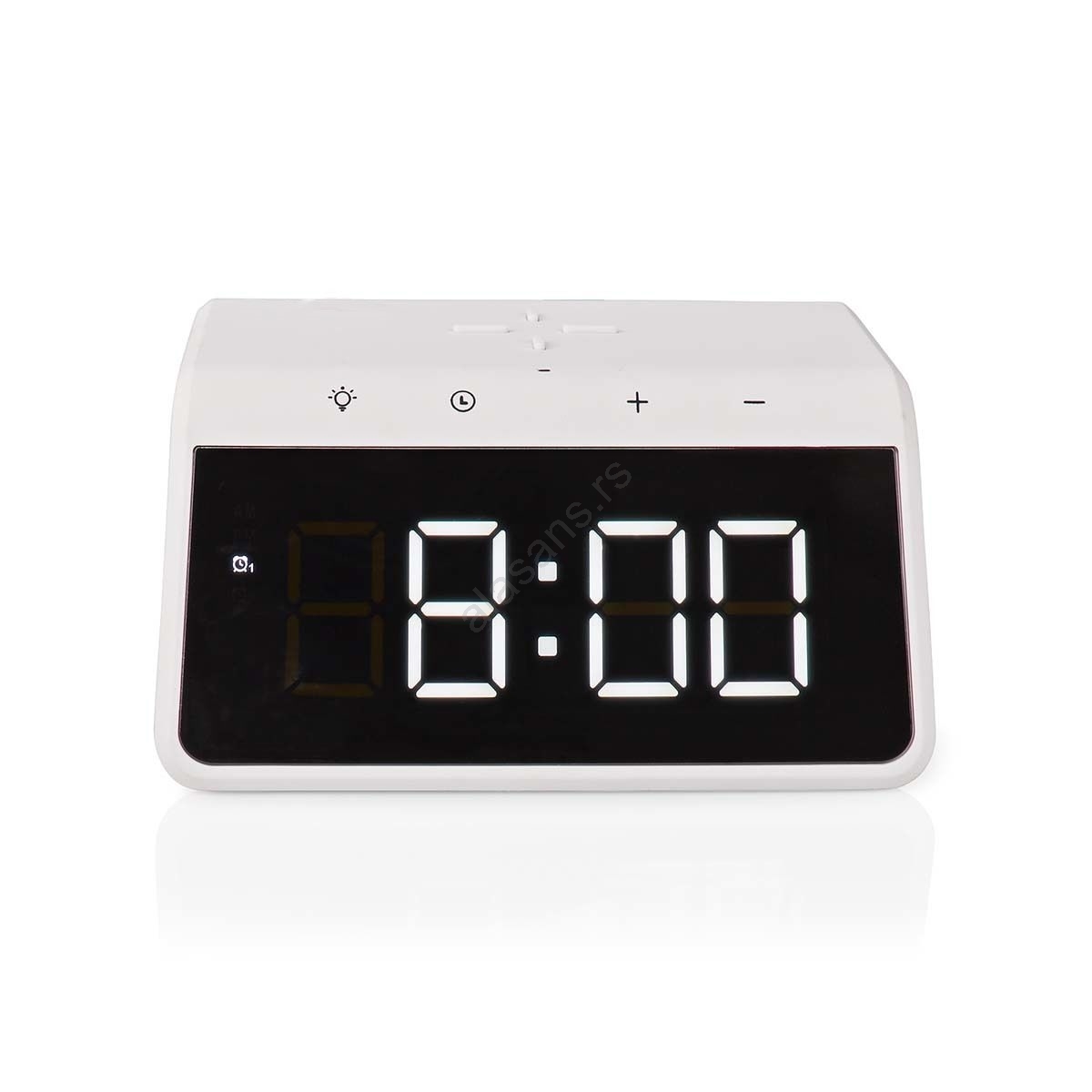 Nedis WCACQ30WT - Budilnik sa LCD ekranom i bežičnim punjačem 15W/5V, bela | Alasans