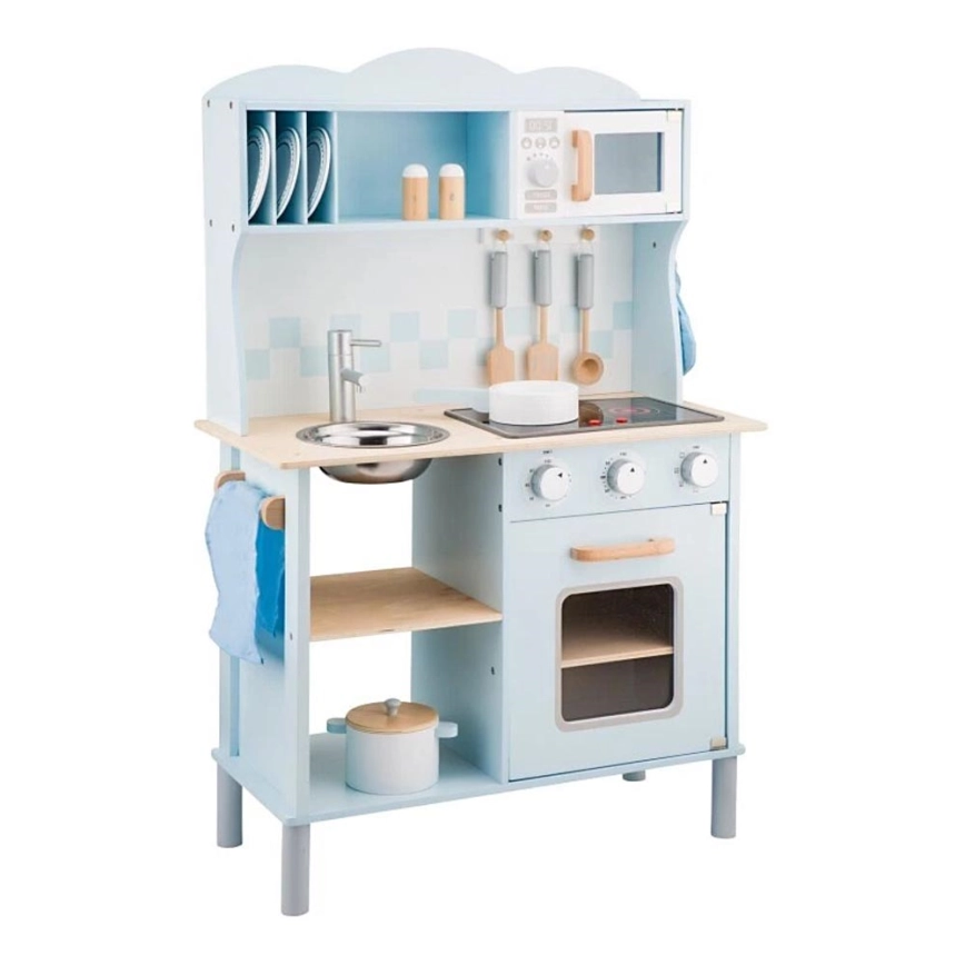 Opremljena je rernom, mikrotalasnom pećnicom i sudoperom sa slavinom.