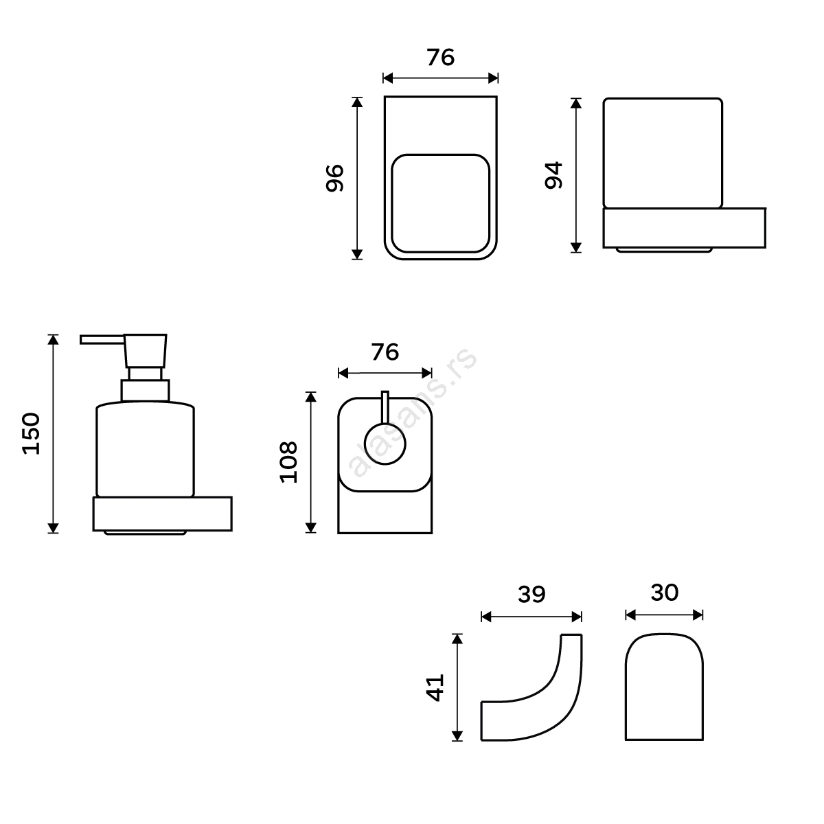 NIMCO NK set-31K-26 - Dozator za sapun, držač za četkice i zidna kukica NIKAU | Alasans