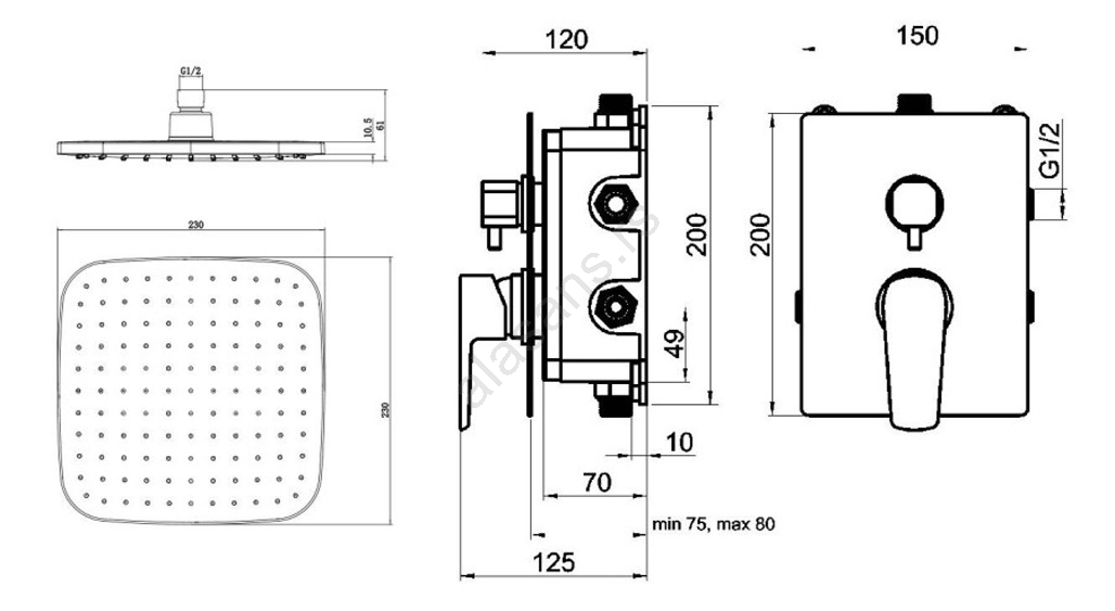 • Sadržaj pakovanja: ugradna baterija sa kartušom, ručni tuš sa 3 položaja, četvrtasti zidni izlaz vode sa držačem za ručni tuš, metalno tuš crevo sa anti-twist mehanizmom protiv uvrtanja, gornja tuš glava sa ramenom.