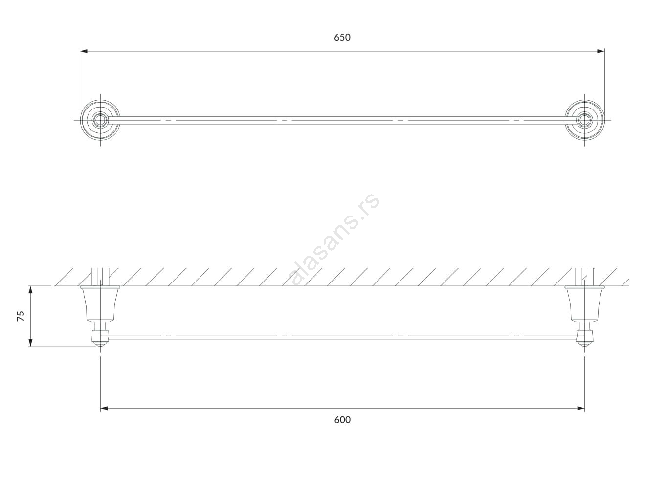 OMNIRES AL53216CR - Zidni držač za peškire ART LINE 65 cm, sjajni hrom | Alasans