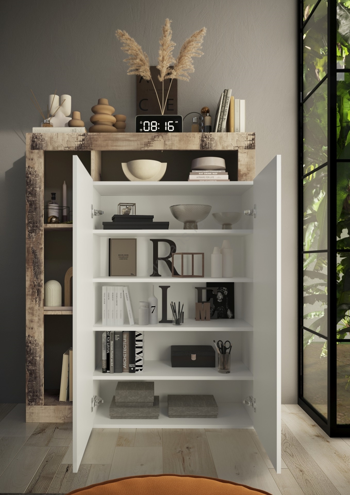 • Ima 4 otvorene police i 5 unutrašnjih pregrada za odlaganje torbi, obuće i sezonskih stvari.
