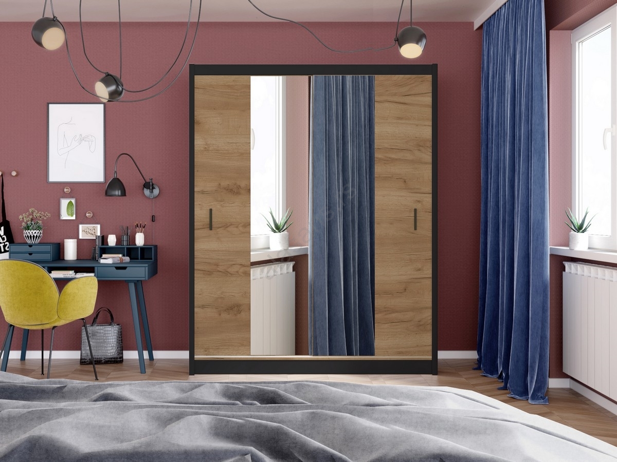 Ormar sa ogledalom MIRO 203x215 cm hrast craft/crna