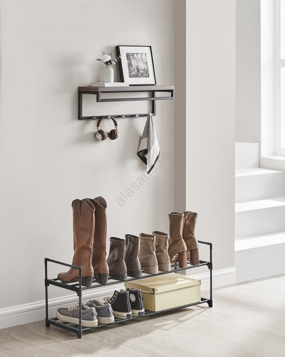 • Snažne metalne cevi spojene kvalitetnim spojnicama stvaraju robusnu policu za cipele.