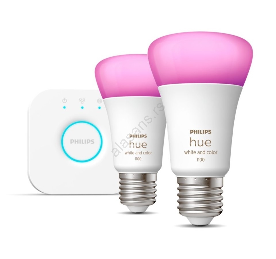 • Set sadrži uređaj za povezivanje Hue Bridge i 2x LED RGB sijalice Philips Hue White And Color Ambience sa grlom E27.