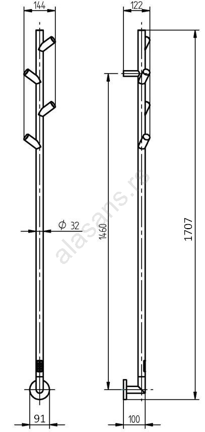 P.M.H. LS1B - Električni sušač peškira LISA 24W/230V 170 cm IP44 crna