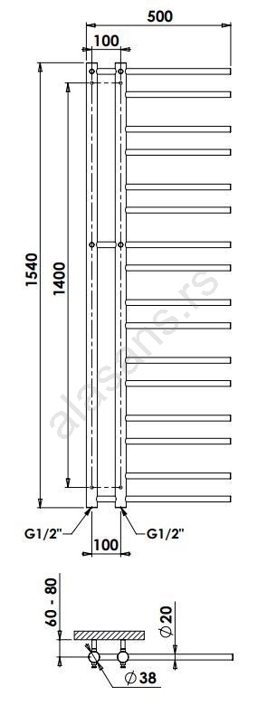 P.M.H. T2C-L - Kupatilski peškirni radijator THEIA 352 W 154 cm levi/sjajni hrom