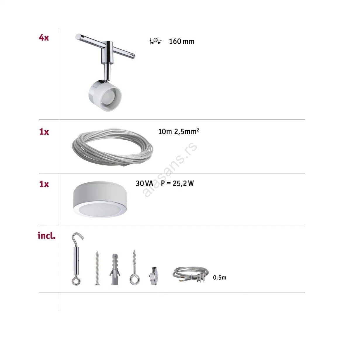 Paulmann 94080 - SET 4xLED/4,8W spot za sajlni sistem STAGE 230V sjajni hrom