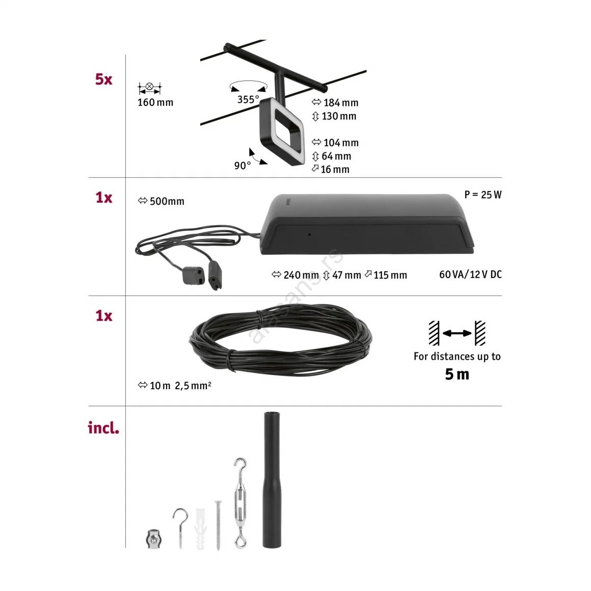• Paulmann 94485 - KOMPLET 5xLED/4,8W spot svetiljki za sajlni sistem FRAME 230V, crne
