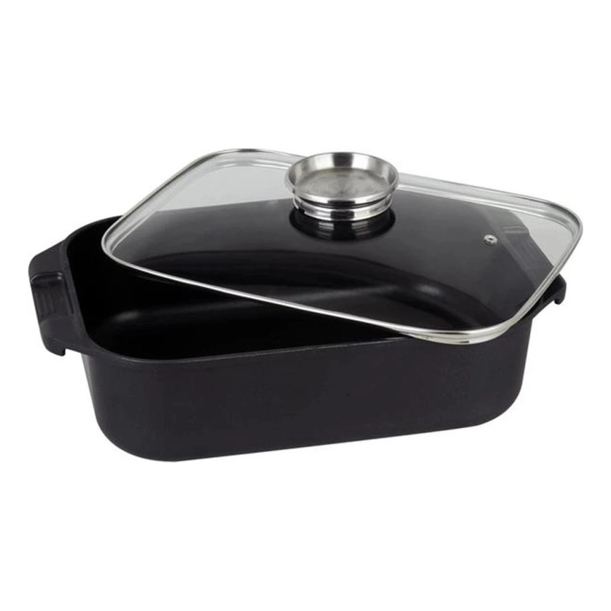 • Pleh sa kvalitetnim nelepljivim premazom i praktičnim staklenim poklopcem – idealan za pečenje, zapečenje ili pripremu jela s ukusnom koricom.