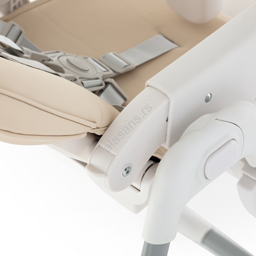 • Navlaka se lako skida i pere, poseduje 5-tačkovne sigurnosne pojaseve, podesiv naslon za leđa, podesivi oslonac za noge, podesivu visinu, dve pozicije tacne sa gornjim delom koji se može prati u mašini za sudove.