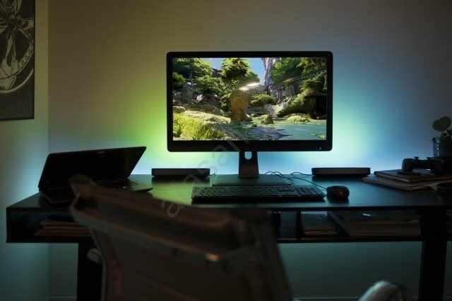 • Hue Play se može fleksibilno postaviti zahvaljujući kablu dužine 2 metra; bilo da je postavljena na podu, iza ormara ili direktno iza televizora, omogućeno je horizontalno i vertikalno pozicioniranje.