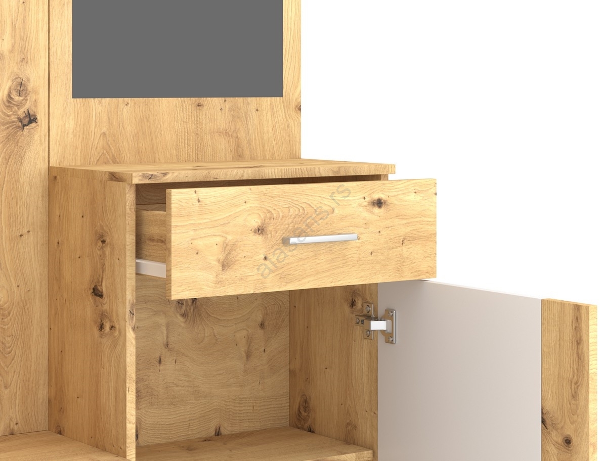 Predsobna stena sa ogledalom NOLAN, hrast artisan/bela | Lampomanija