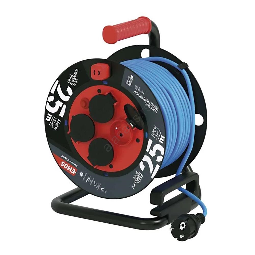 Produžni kabl na bubnju, 25 m, 4 utičnice, silikonski, IP44 | Alasans