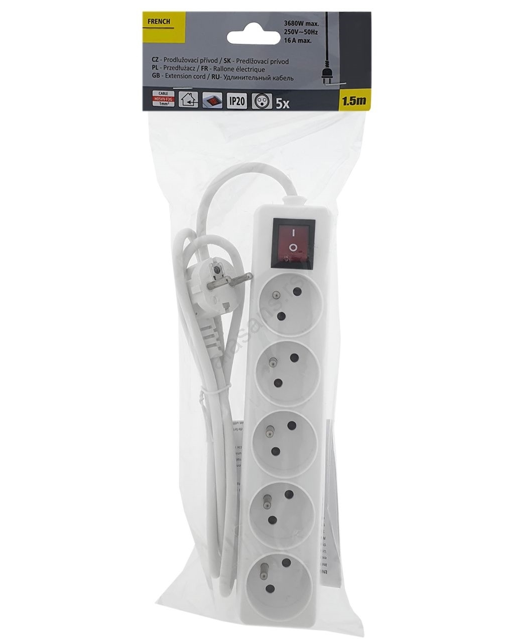 Produžni kabl sa prekidačem, 5 utičnica, 1,5 m