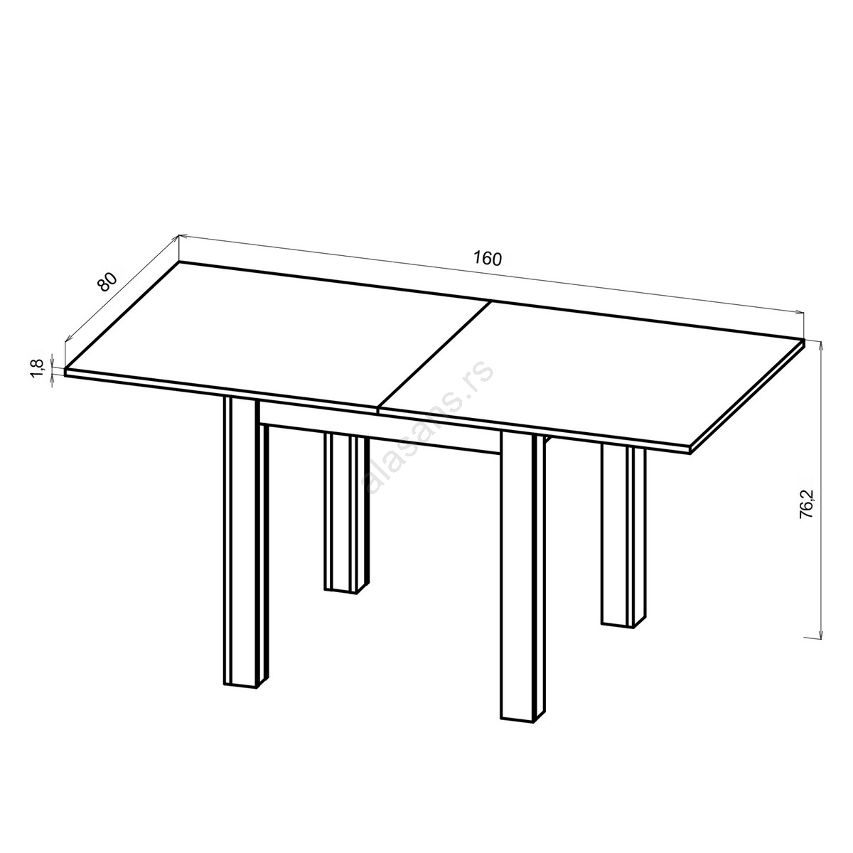 Dimenzije stola kada je rasklopljen: 160 x 80 cm.