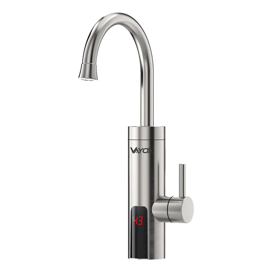 Protočni grejač vode sa LED displejem — 3000 W / 230 V, IPX4, nerđajući čelik