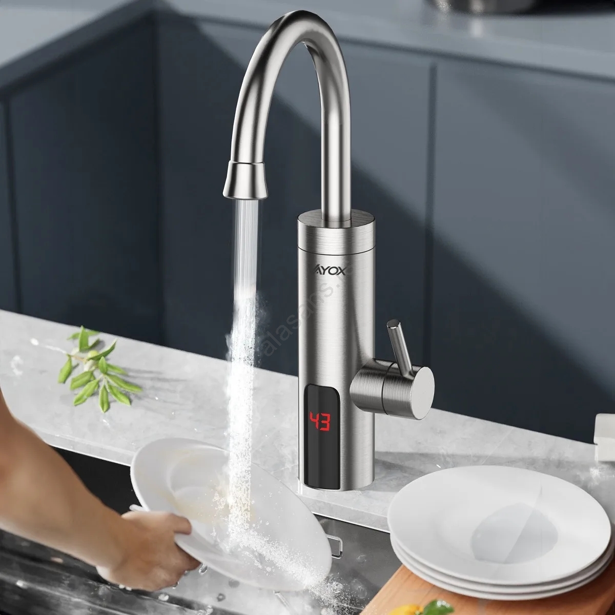 Protočni grejač vode sa LED displejem — 3000 W / 230 V, IPX4, nerđajući čelik | Alasans