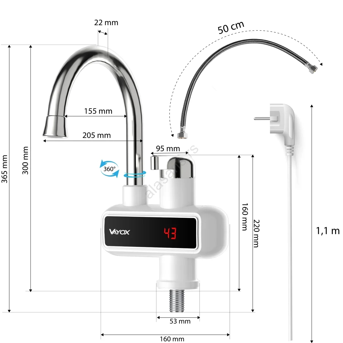 Protočni grejač vode sa LED displejom 3000W/230V IPX4, bela | Alasans