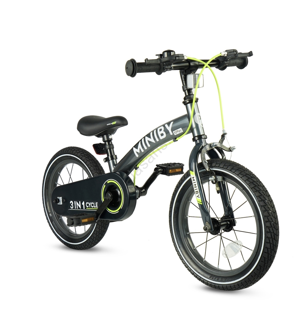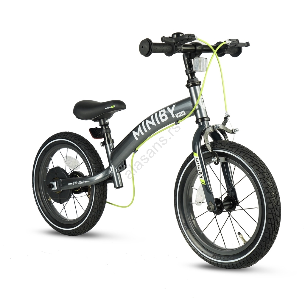 QPlay - Dečiji bicikl 14" MINIBY 3u1 siva